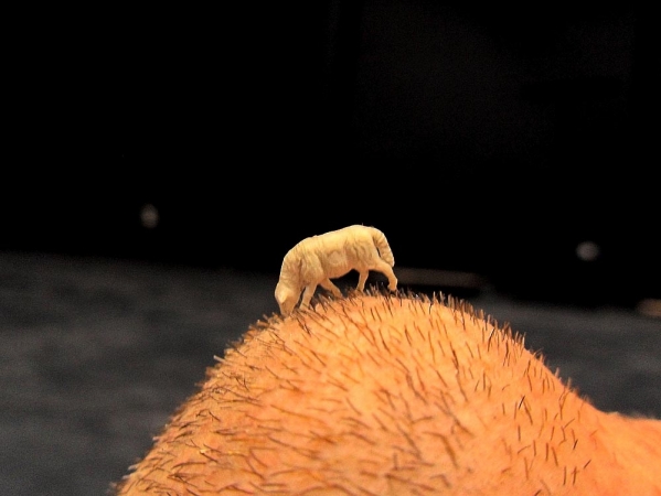 Ein Zaun, eine grüne Wiese, ein Baum, ein Schaf. Und dann scheppert es und eine Herde Hirsche zieht vorbei: „Was dies alles bedeutet? Die Kunst ist eine eingezäunte Wiese, drum herum gibt‘s eine viel größere Wiese, das ist die Welt. Wenn der Zaun zusammenbricht, ist die Kunst auf einmal überall. Ein schöner Traum.“