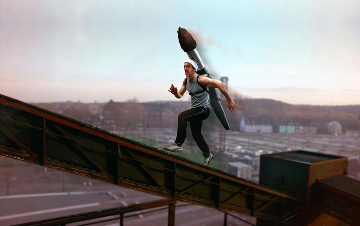Video, ca. 5 Minuten, Installation: Vogelhaus, Stierfellhocker, 2010