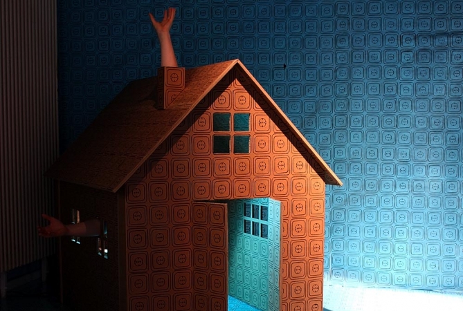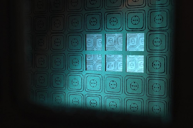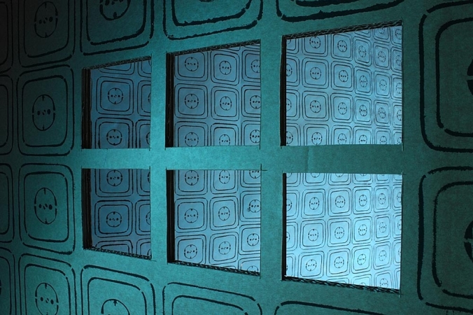 Das rekonstruierte Steckdosenhaus ist begehbar, es können sich darin bis zu drei Personen aufhalten. Licht und Geräuschkulisse sorgen für eine wenig kindgerechte Atmosphäre.